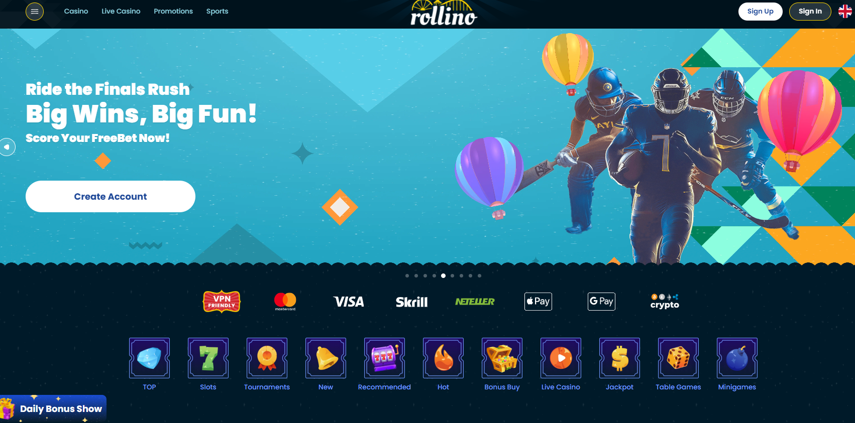 Rollino Online casino released in 2023 under the possession of Altacore N.V. It has a permit from Curacao, offers several fiat and cryptocurrency settlement options, and a number of interesting casino and live casino site games.